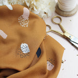Moonstone Ochre is a beautiful colour viscose fabric with all over abstract poetic prints. You'll fall in love with this dreamy fabric that is ideal for sewing dresses, tops, skirts and trousers with fashionable drape and comfort.