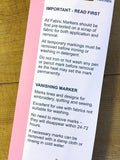Vanishing fabric marker. With purple ink this pen is easy to see on fabric to mark quilting and stitching lines. No need to wash away, marks will naturally fade and disappear within 24-72 hours. Good for fabrics not suitable for washing. Can also be removed with damp cloth.