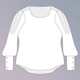 A trio of pretty pleats run over the shoulder and down into the sleeve. They then open up to a floaty bishop sleeve finishing with extended cuffs. The pattern can also be lengthened to create a beautiful dress.