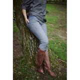 Thanks to the super-forgiving fit and a knit elastic waistband you won’t have to fret about fitting these jeans. With functioning patch pockets in the back and faux front pockets and fly, you can whip these up in a day.
